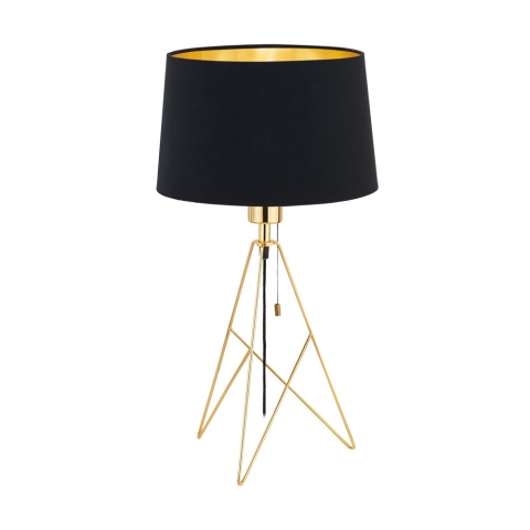 A Camporale Eglo 39179 háromlábú asztali lámpa modern designnal és arany-fekete színkombinációval készül, amely kiemeli a lakás enteriőrjét. A lámpa 56 cm magasságú, átmérője 30 cm, súlya pedig 1,35 kg. A termék acél és textil anyagok felhasználásával kés