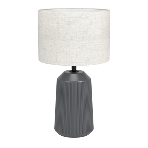 A Capalbio Eglo 900824 kerámia asztali lámpa szürke színben, 41 cm magassággal, modern és letisztult formavilágot képvisel. A lámpatest kerámia és textil anyagok kombinációjával készül, szürke és fa színekkel. Egy darab E27 foglalattal rendelkezik, amely