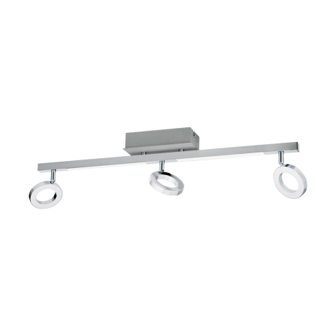 A Cardillio Eglo 96181 LED spot lámpa 16,2 W teljesítményű, integrált LED modullal ellátott mennyezeti lámpa. Fényárama 1320 lumen, amely melegfehér, 3000 K színhőmérsékletű fényt biztosít. A lámpatest modern stílusban készült, főként alumínium és műanyag