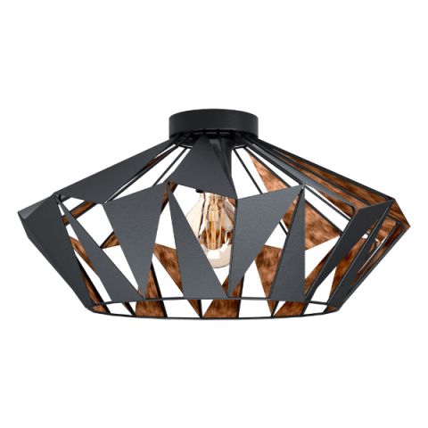 Mennyezeti lámpa, fekete/vörösréz színben. Teljesítménye: E27 1x60W. Fényforrás nélkül értékesítjük.