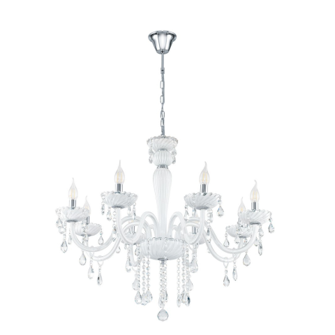Ez a CARPENTO sorozatú függesztett lámpatest krómozott acélból és fehér üvegből készült. A reflektorhoz nyolc E14-es lámpa szükséges...