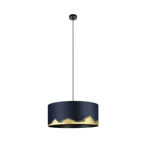 A CASUARITA függesztett lámpa kerek, sötétkék bársonyból készült, kézzel festett arany díszítéssel. A bársonyernyő belseje fekete bevonatú, és kiváló minőségű fekete textilkábellel párosul, elegáns megjelenést kölcsönözve. A lámpa E27 foglalattal, cserélh..