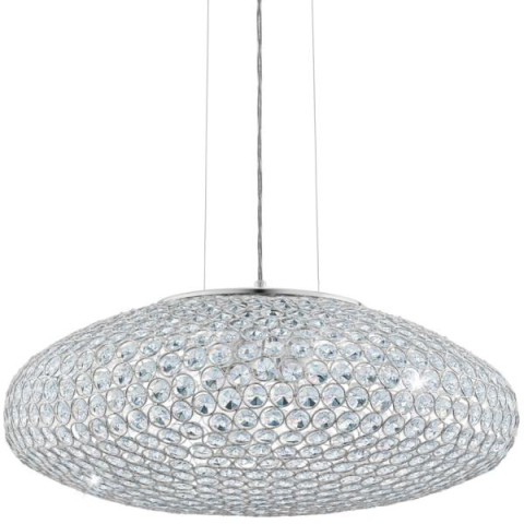 A CLEMENTE függőlámpa króm színű fémházzal és átlátszó kristályokból álló ovális lámpaernyővel rendelkezik. A csúcskategóriás kristályelemek csillogó, minőségi megjelenést kölcsönöznek a világítás bekapcsolásakor. A függőlámpa elegánsan illeszkedik a mode..