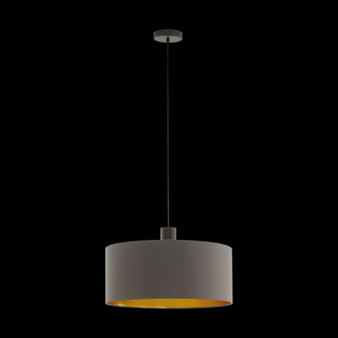 A CONCESSA 1 függőlámpa kerek kapucsínós szövet lámpaernyővel rendelkezik, arany színű belső felülettel. Az árnyékoló sötétbarna fém eleme és az azonos színű fém ernyő tökéletesen kiegészíti a lámpa stílusos megjelenését. A függőlámpa minden modern enteri..