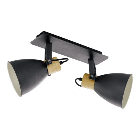A Coswarth Eglo 99075 spot lámpa antracit és natúr fa színkombinációban készül, vintage stílusban. A mennyezeti lámpatest két darab E27-es foglalattal rendelkezik, így cserélhető fényforrásokkal szerelhető fel. A lámpatest acélból és fából készült, IP20-a