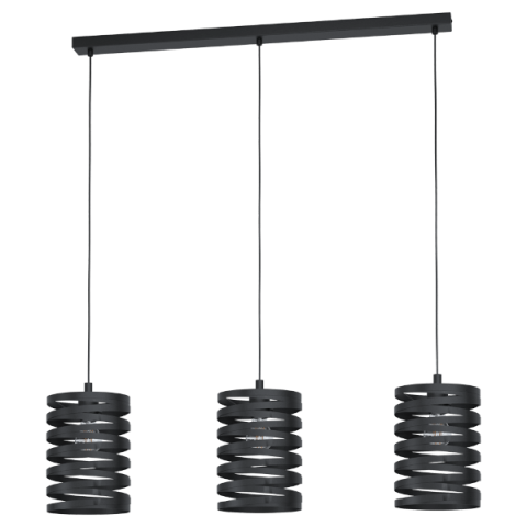A Cremella Eglo 99347 függesztett lámpa három E27-es foglalattal rendelkezik, amelyek cserélhető fényforrást tesznek lehetővé. A lámpatest modern stílusban készült, fekete színű acélból, amely tartósságot és elegáns megjelenést biztosít. A termék teljes m