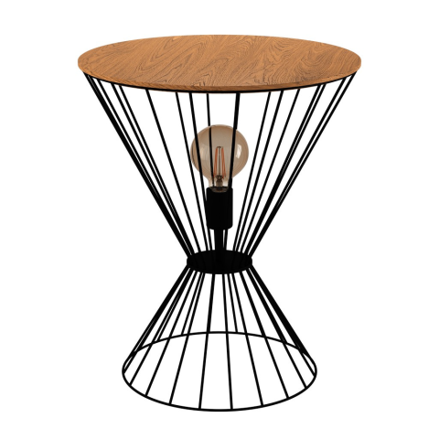 DESIERTO asztal homokóra alakú fekete dróttalppal, kerek tölgy furnérozott falappal. A termék beépített környezeti világítással rendelkezik a belső lámpatartóval, amely gyönyörűen kiegészíti a játékos dizájnt. Ezzel a kitett villanykörte kialakítással a t..