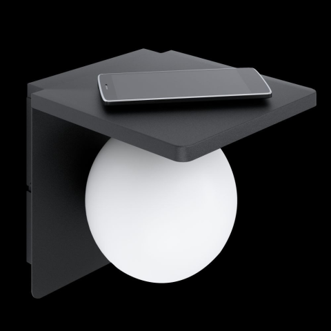 Eglo Ciglie falilámpa qi töltővel Helyezze rá vezeték nélküli qi töltésre alkalmas telefonját a lámpa felső polcára és már indul is a telefon töltése A lámpa kapcsolós vezetékkel csatlakoztatható a hálózathoz.