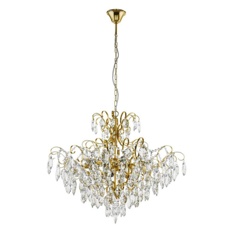 A Fenoullet Eglo 39606 kristály csillár klasszikus stílusban készült, sárgaréz színű acél vázzal és áttetsző kristály díszítéssel. A lámpatest kilenc darab E14-es foglalattal rendelkezik, amelyekhez cserélhető fényforrások használhatók, így a fényáram, a