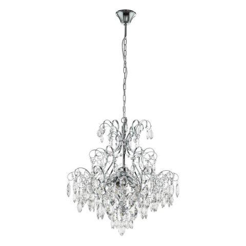 A Fenoullet Eglo 39523 egy klasszikus stílusú, öt foglalattal rendelkező kristály csillár, amely E14 típusú izzókkal kompatibilis. A lámpatest acélból és áttetsző kristályból készült, króm színű kivitelben. A csillár láncos felfüggesztéssel rendelkezik, á