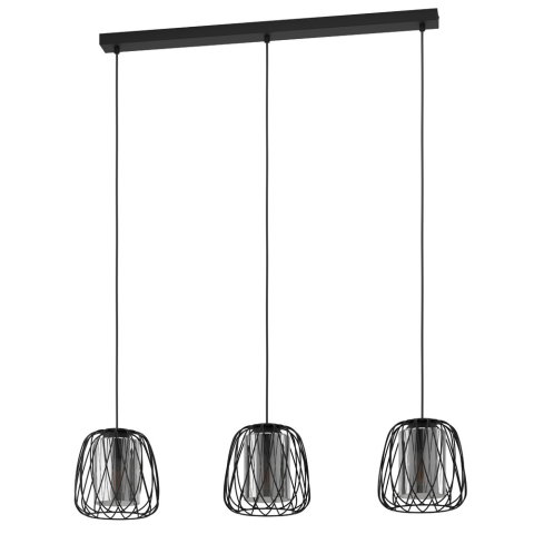 A Floresta Eglo 99706 függesztett lámpa három E27 foglalattal rendelkezik, amelyek cserélhető fényforrásokkal szerelhetők fel. A lámpatest anyaga acél és üveg, színe fekete és áttetsző, ami modern megjelenést kölcsönöz. A termék méretei: hossza 890 mm, sz