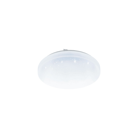 A Frania Eglo 98294 kristály hatású távirányítós mennyezeti LED lámpa 12 W teljesítménnyel, modern stílusban készült, fehér színű, műanyag és acél anyaghasználattal. A lámpatest átmérője 300 mm, magassága 55 mm, tömege 0,72 kg. A beépített LED modul 1050