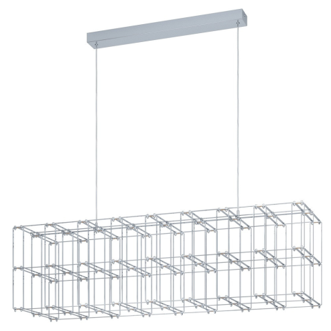 A Frontera Eglo 39763 szabályozható függesztett LED lámpa modern, minimál stílusban készült, krómszínű acélból. A lámpatest 81 darab, egyenként 0,75 wattos LED modult tartalmaz, melyek összesített névleges teljesítménye 60,75 watt. A melegfehér fény 3000