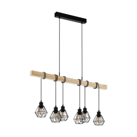 1 kép EGLO Függ.E27 6x60W fekete/tölgy Townshend5