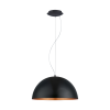 A GAETANO 1 függőlámpa kerek, fekete acélból készült lámpabúra réz színű belső felülettel. A termék átmérője 53 cm. A függőlámpa kiegészíti az ipari stílusú belső tereket, és megfelelő hangulatot teremt a nappaliban vagy az étkezőasztal fölött. A villanyk..