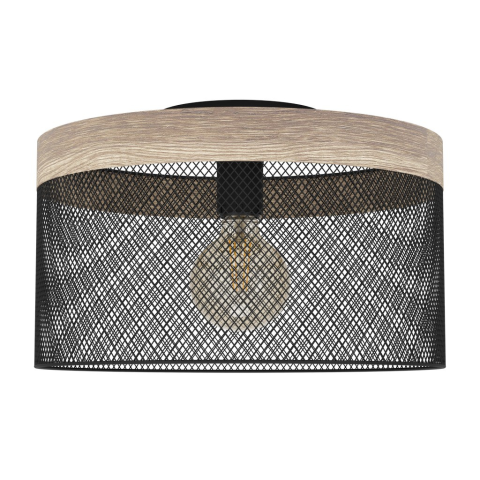 A KILNSDALE lámpa fekete fémhálós hengerrel rendelkezik, amely egy fa tetőre van felfüggesztve. A háló a fény és az árnyék lenyűgöző játékát hozza létre, amint a lámpa felkapcsol. Tetszetős ipari megjelenésével a lámpa tökéletesen beleolvad a modern belső..