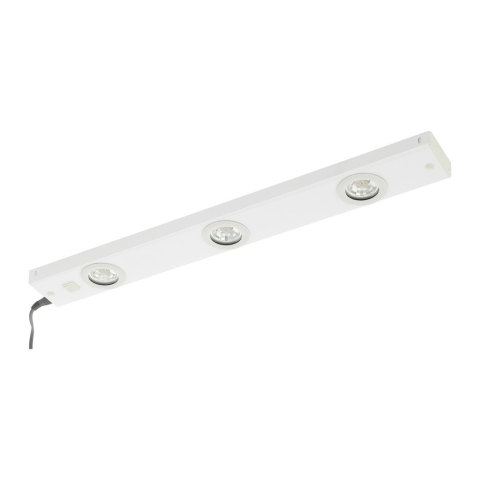 szekrény alatti KOB LED lámpa 60 cm-es, és fehér fém felülettel rendelkezik. A konyhai lámpa a három kör alakú világítópanelek mögé integrált LED-ekkel rendelkezik, amelyek kellemes meleg fehér fényt adnak, és a házon található billenőkapcsolóval egyszerű..