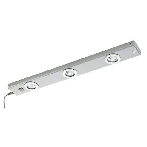 KOB LED-es szekrény alatti lámpa 60 cm-es és matt nikkel fém bevonattal rendelkezik. A konyhai lámpa a három kör alakú világítópanelek mögé integrált LED-ekkel rendelkezik, amelyek kellemes meleg fehér fényt adnak, és a házon található billenőkapcsolóval ..