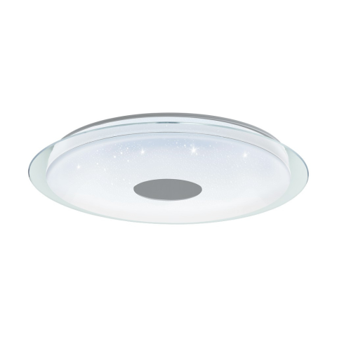 A LANCIANO-Z LED mennyezeti lámpa a Connect része. Z Okos otthon termékcsalád. A termék fehér műanyag borítással rendelkezik. Ha világít, olyan csillogó hatást kelt, mint a csillagok az éjszakai égbolton. A termék átlátszó műanyag gyűrűvel és a design köz..
