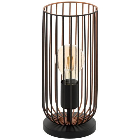 A Roccamena Eglo 49646 asztali hangulatlámpa 31 cm magas, átmérője 13 cm, tömege 0,96 kg. A lámpatest acélból készült, fekete és vörösréz színkombinációval, vintage stílusban. E27 foglalattal rendelkezik, mely egy darab cserélhető fényforrás használatát t