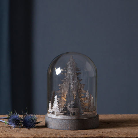 1 kép EGLO Magyarország Kft. Karácsonyi üvegbúra, rénszarvas világító havas erdőben-elem nélkül (Kupol)