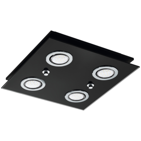 A Grattino Eglo 33804 mennyezeti lámpa modern megjelenéssel rendelkezik, négy GU10 foglalattal szerelt, fekete acél és áttetsző üveg kombinációjával. A lámpatest 290 mm hosszúságú és szélességű, magassága 70 mm, a termék tömege 2,21 kg. A lámpa IP20 védet