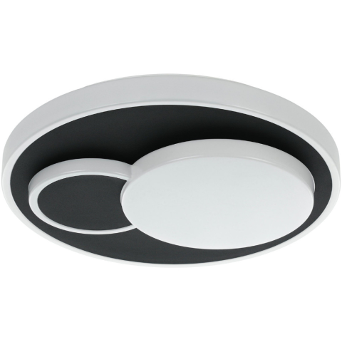 A Lepreso Eglo 75665 mennyezeti LED lámpa 38 cm átmérőjű, modern kialakítású világítótest, amely beépített 19,5 W teljesítményű LED modullal működik. A lámpa fényárama 2300 lumen, amely melegfehér, 3000 K színhőmérsékletű fényt biztosít, így kellemes hang