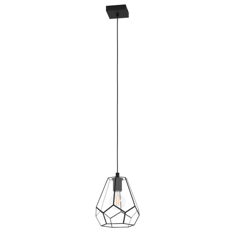 A Mardyke Eglo 43643 függesztett lámpa modern kialakításával és letisztult formavilágával illeszkedik a lakásvilágítási megoldásokhoz. A lámpatest fekete acélból és áttetsző üvegből készült, egy E27 foglalattal rendelkezik, amelybe cserélhető fényforrás h