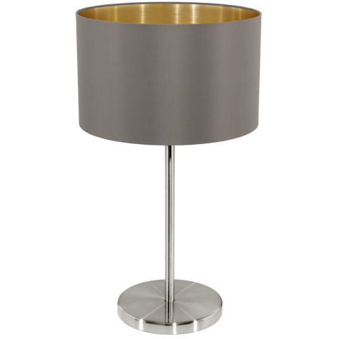 A Maserlo Eglo 31631 textil asztali lámpa modern stílusban, barna és arany színkombinációval készül, melynek magassága 42 cm, átmérője 23 cm. A lámpatest acél és textil anyagokból épül fel, így biztosítva a tartósságot és az esztétikus megjelenést. E27 fo