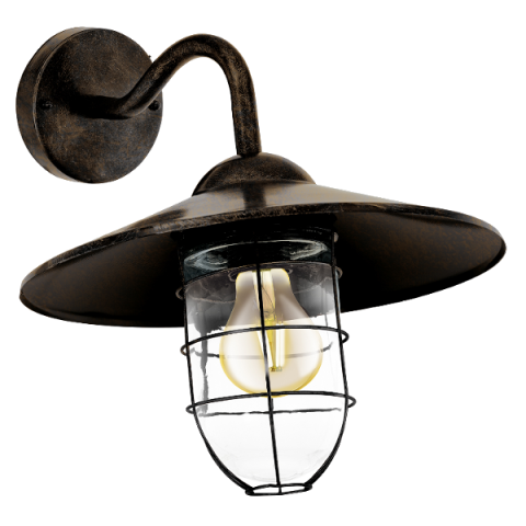 1 kép    EGLO MELGOA KÜLTÉRI FALI L. E27 1X60W IP44 FÉM/ÜVEG ANTIK RÉZ
