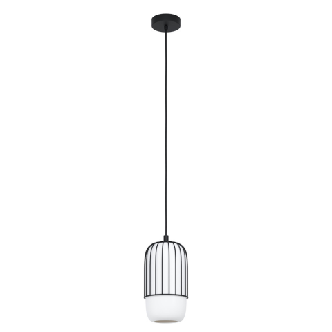 A Muleges Eglo 99618 függesztett lámpa fekete-fehér színkombinációban készül, acél és üveg felhasználásával. Egy darab E27 foglalattal rendelkezik, amely cserélhető fényforrás használatát teszi lehetővé, így a fényáram, fényszín, teljesítmény és színhőmér
