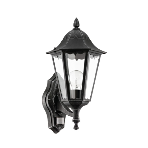 1 kép EGLO Navedo fekete-átlátszó mozgásérzékelős kültéri falikar (EG-93458) E27 1 izzós IP44