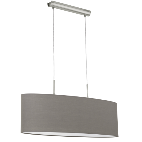 A Pasteri Eglo 31581 függesztett lámpa modern stílusban készült, tópszínű textil és acél anyagok kombinációjával. A lámpatest két darab E27 foglalattal rendelkezik, amelyek cserélhető fényforrásokkal működtethetők, a fényáram, fényszín, teljesítmény és sz