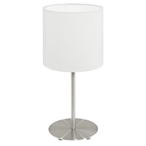 PASTERI asztali lámpa matt nikkel fém talppal és kerek, fehér színű szövet lámpaernyővel rendelkezik. A termék egyszerű kialakítású, amely tökéletesen illeszkedik szinte bármilyen belső térbe. Könnyen be- és kikapcsolható az in-line kapcsolóval. Akár az é..