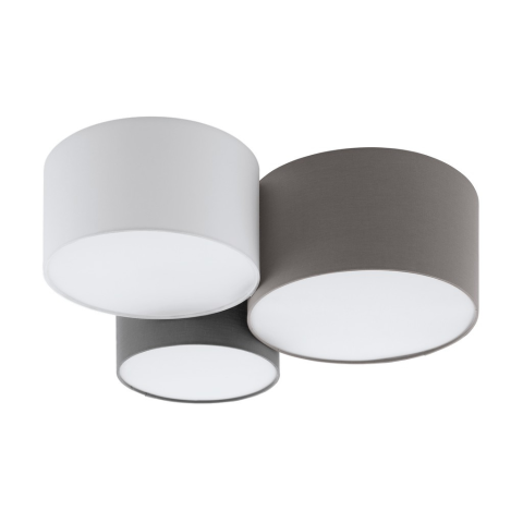 A PASTORE mennyezeti lámpa három különböző méretű kerek szövet lámpaernyőt tartalmaz. A három árnyalat – egy antracitbarna, egy fehér és egy szürke – stílusos megjelenést kölcsönöz. A fehér fényszóró kialakítása biztosítja a fény egyenletes eloszlását, és..