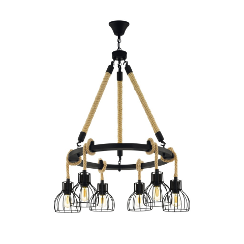 A RAMPSIDE függőlámpa fekete fémgyűrűvel rendelkezik, hat fekete fém lámpabúrával, amelyek mindegyike kenderkötélre van felfüggesztve. A lámpabúrák különböző magasságokban lóghatnak egyszerűen a kötelek fel- vagy letekerésével. A kenderkötelek és a black ..