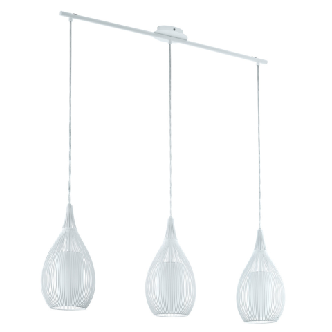 A Razoni Eglo 94388 egy három foglalattal rendelkező, fehér színű függesztett lámpa, amely vintage stílusú kialakításával és acél, valamint üveg anyaghasználatával modern és klasszikus enteriőrökbe egyaránt illeszthető. A lámpatest három darab E27-es fogl