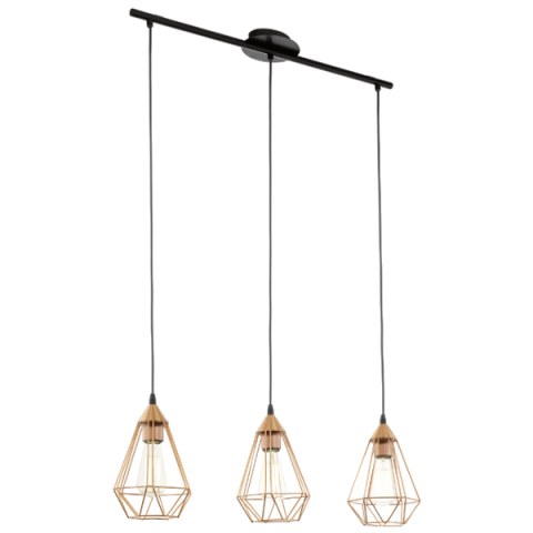 EGLO RÉZ SZÍNŰ, FÉM TARBES FÜGGESZTÉK E27 3X60W világítás árgrafikon