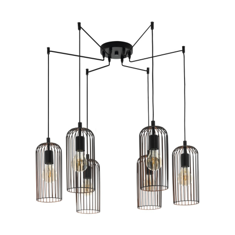 1 kép EGLO ROCCAMENA fekete-vörösréz függesztett lámpa (EG-49643) E27 6 izzós IP20