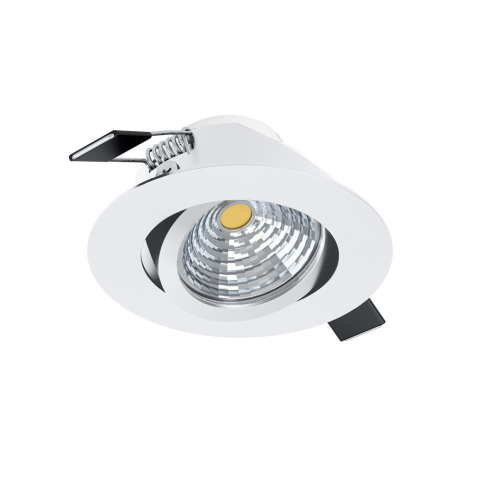 A Saliceto Eglo 98305 szabályozható süllyesztett LED spot lámpa modern kialakításával és fehér színű, alumínium házával illeszkedik az álmennyezetekbe. A 6 W teljesítményű LED modul hidegfehér, 4000 K színhőmérsékletű fényt bocsát ki, amelynek fényárama 5