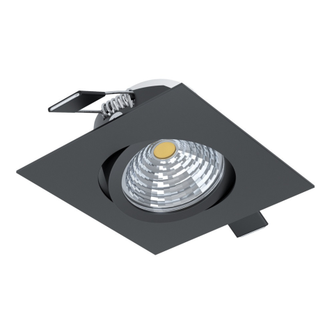 A Saliceto Eglo 98611 szabályozható, szögletes süllyesztett LED spot lámpa modern megjelenésű, fekete alumínium házzal rendelkezik, amely álmennyezetbe süllyeszthető kivitelben érhető el. A 6 wattos LED modul 380 lumen fényáramot biztosít melegfehér, 2700
