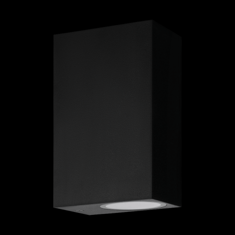 Scogliera-E LED kültéri fali lámpa GU10 2x5W szögletes, IP44 fekete színben. A fényforrás nem tartozék. Gazdaságos, környezetbarát, újrahasznosítható csomagolásban.