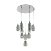 A Siracusa Eglo 39506 függesztett lámpa tíz darab E27 foglalattal rendelkezik, így kiválóan alkalmas nagyobb helyiségek egyenletes megvilágítására. A lámpatest acélból és üvegből készült, króm és füstszínű felületkialakítással, amely modern, design stílus