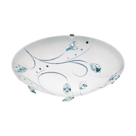 A Sorrenta Eglo 95689 mennyezeti LED lámpa 16 W teljesítményű, integrált LED modullal rendelkezik, amely hidegfehér (4000 K) fényt biztosít, 1170 lumen fényárammal. A lámpatest modern stílusú, a kialakításához üveget és acélt használtak, fehér és áttetsző