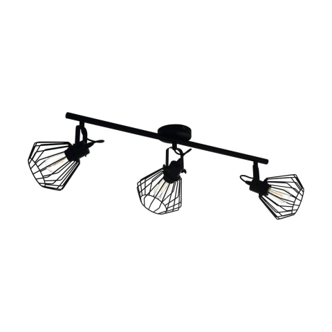 TABILLANO mennyezeti lámpa fekete fém felülettel és három állítható gyémánt alakú huzal spotlámpával rendelkezik. A huzalos lámpaernyők lenyűgöző fény-árnyékjátékot hoznak létre, amint a lámpa felkapcsol, és tökéletes befejezése a modern belső tereknek. A..