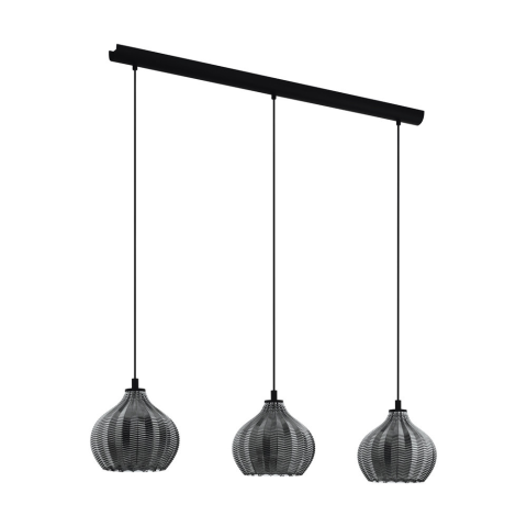 A Tamallat Eglo 43577 függesztett lámpa három E27-es foglalattal rendelkezik, amelyek cserélhető fényforrással szerelhetők fel. A lámpatest acélból és üvegből készült, fekete és áttetsző színkombinációval. A termék méretei 1050 mm hosszúság, 230 mm széles