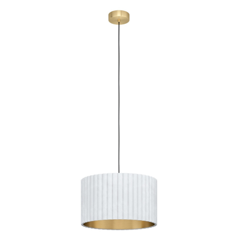 A Tamaresco Eglo 39765 függesztett lámpa egy modern lakásvilágítási megoldás, amely sárgaréz, fehér és arany színkombinációban készül. A lámpatest acél és textil anyagok felhasználásával készült, ami tartósságot és elegáns megjelenést biztosít. Egy darab