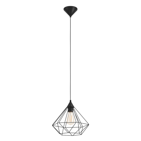 A Tarbes Eglo 94188 geometrikus függesztett lámpa modern, skandináv stílusú kialakítással rendelkezik, amelyet fekete színű, acélból készült lámpatest jellemez. Az 1xE27 foglalat lehetővé teszi különböző cserélhető fényforrások használatát, így a fényáram