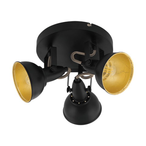 1 kép EGLO THORNTON MENNYEZETI LÁMPA E14 3X28W FEKETE / ARANY KÉZI FESTÉSSEL