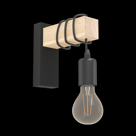 TOWNSHEND FALI LÁMPA E27 1X10W A FÉNYFORRÁS NEM TARTOZÉK, FEKETE/FA SZÍNBEN